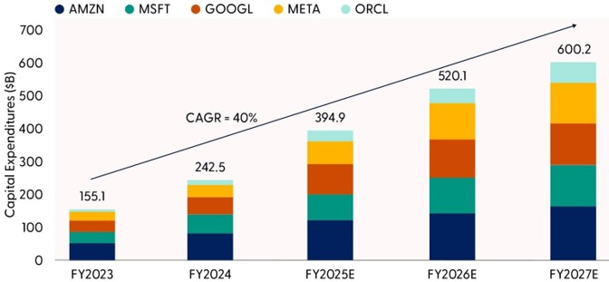 Hyperscalers include Alphabet (GOOG/L), Amazon (AMZN), Meta (META), Microsoft (MSFT), and Oracle (ORCL). Past performance is no guarantee of future results.