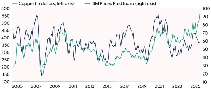 The relationship between copper and inflation is further supported by International Monetary Fund (IMF) research that showed a 1% increase in copper prices raised headline and core inflation by 0.02% within 12 months, with the peak inflationary impact occurring two or three years after the supply shock. With copper up 41% last year, this means the inflation impact over the next 12 months could be close to 0.8% of overall headline and core CPI.